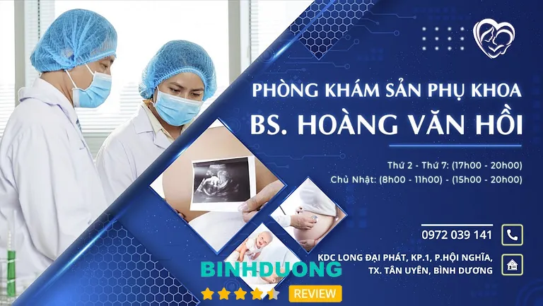 Phòng khám Sản phụ khoa – BS. Hoàng Văn Hồi tọa lạc tại số 154, đường ĐT 747, khu phố 1, phường Hội Nghĩa, TP. Tân Uyên, Bình Dương. Đây là một phòng khám chuyên sâu về sản phụ khoa — cung cấp các dịch vụ khám thai, siêu âm, tư vấn thai sản, phụ khoa, xét nghiệm tiền sản, sàng lọc dị tật thai nhi, tầm soát ung thư cổ tử cung…