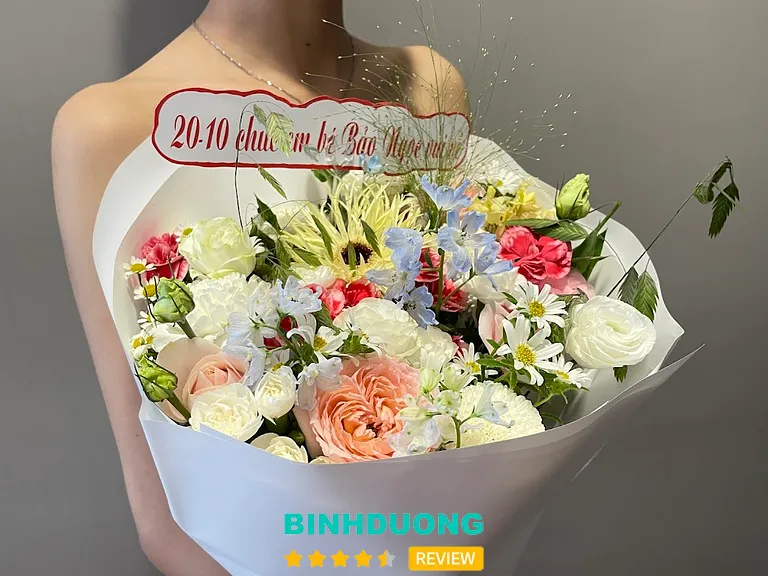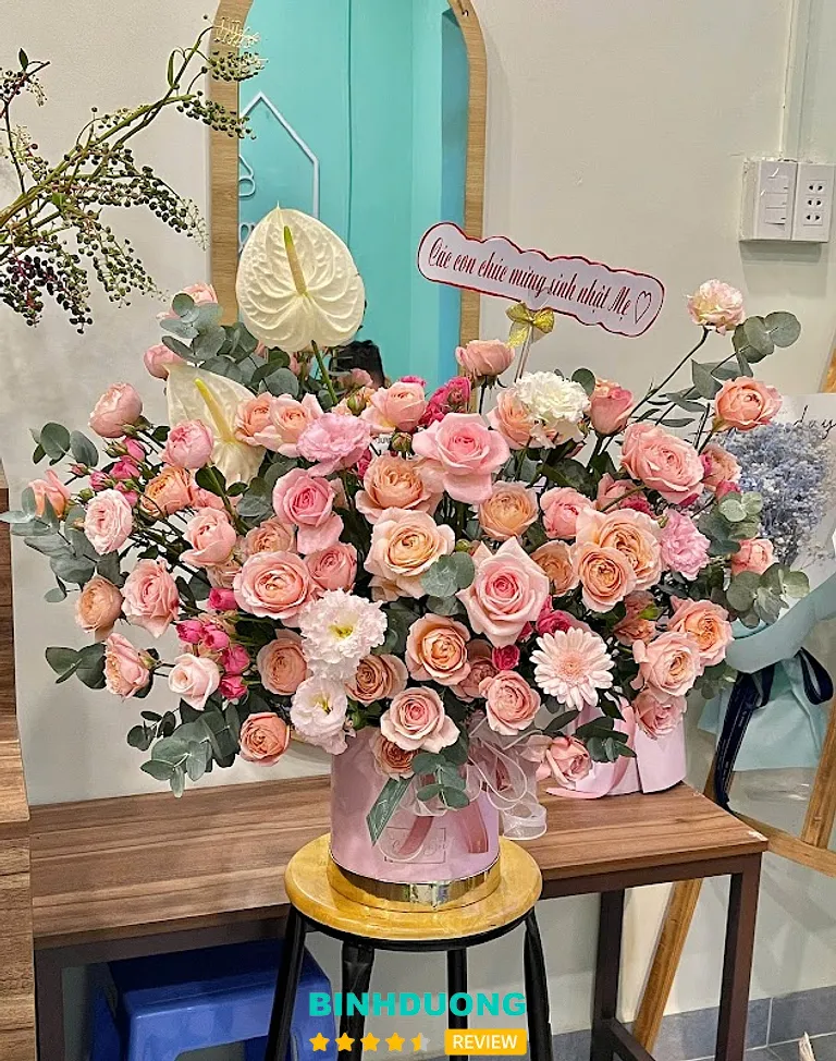 Từ địa điểm chính tại Nguyễn Văn Tiết, TP. Thuận An, tiệm đã mở rộng phục vụ rộng khắp khu vực Bình Dương, giúp khách hàng dễ dàng đặt và nhận hoa.