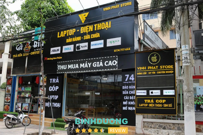Vinh Phát Store có địa chỉ chính ở 74 Hoàng Hoa Thám, P. Hiệp Thành, Thủ Dầu Một, Bình Dương. Đây là cửa hàng đã hoạt động nhiều năm trong lĩnh vực sửa chữa laptop, macbook, máy tính — đồng thời bán laptop cũ, linh kiện, sạc thay thế. Bên cạnh đó, Vinh Phát Store được nhiều nguồn tin đánh giá là một trong những trung tâm uy tín hàng đầu tại Bình Dương.